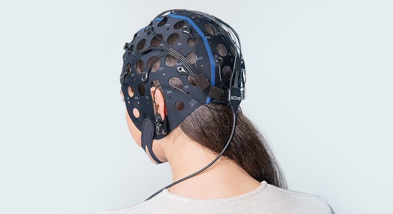 A universal set of removable Ag/AgCl sintered electrodes MCScap‑E with TouchProof 1.5 mm connectors and textile helmets with rings according to the 10‑20 system..