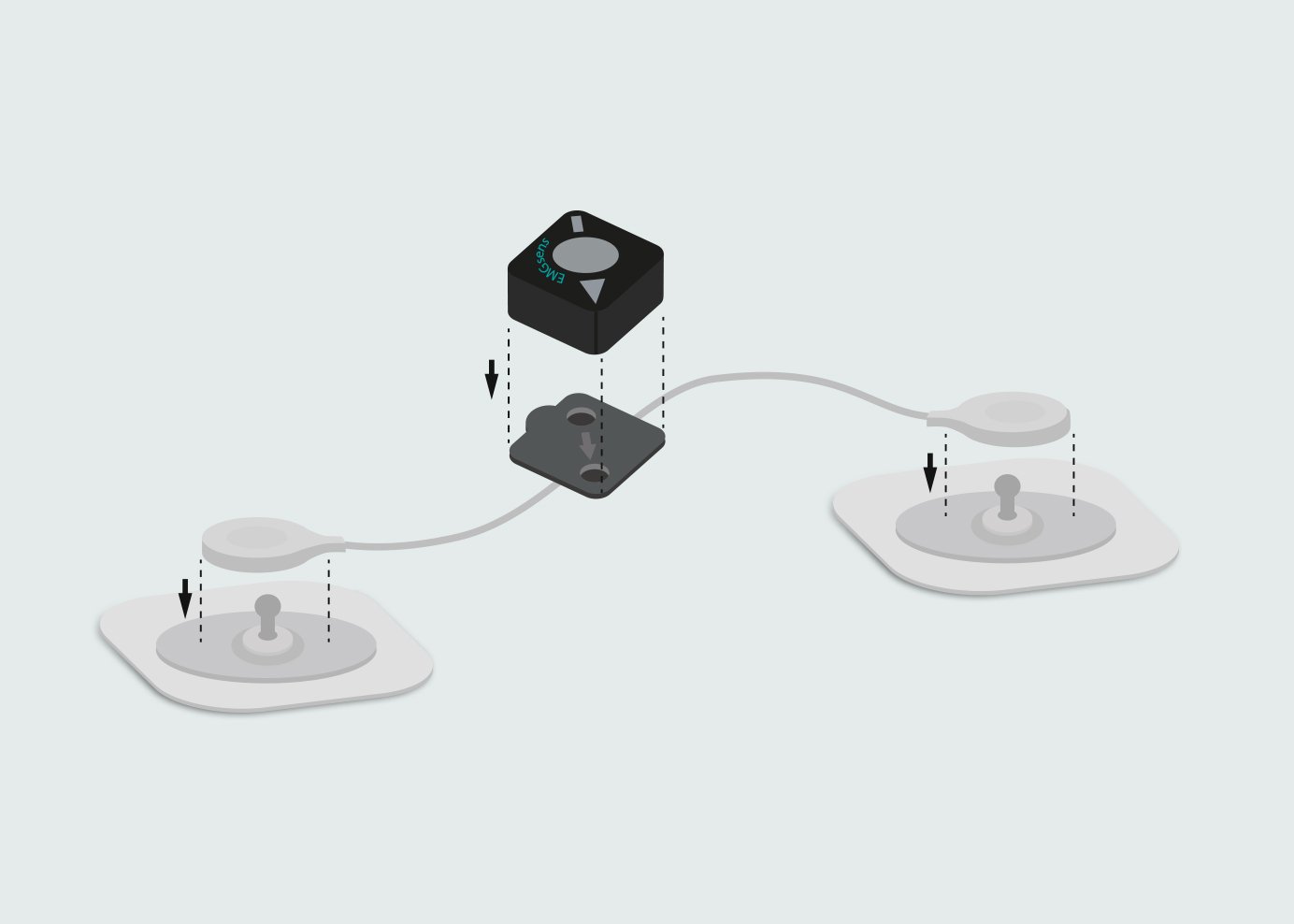 EMGsensBLE — одноканальный сверхлёгкий беспроводной датчик для поверхностной электромиографии и регистрации движений. Устройство фиксируется непосредственно на коже и передаёт данные на ПК или мобильное приложение по интерфейсу BLE 5.0.
