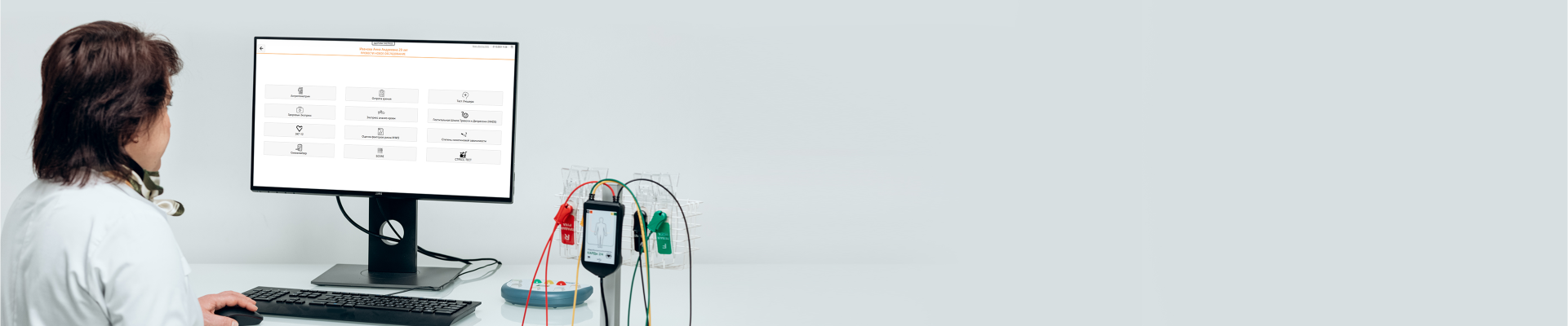 Модуль предназначен для неинвазивной скрининговой оценки состояния сердца и уровня стресса организма. В процессе обследования регистрируется ЭКГ покоя в положении сидя или лежа с 4-х электродов, наложенных на конечности (отведения I, II, III, aVR, aVL, aVF). Медработник выбирает длительность регистрации: 30 секунд, 3 или 5 минут.