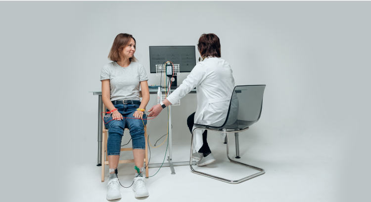 - регистрация ЭКГ покоя в 6 стандартных отведениях сидя или лежа, неинвазивной скрининговой оценки состояния сердца (методика «Кардиовизор») и/или уровня стресса организма (методика «Анализ вариабельности сердечного ритма»);